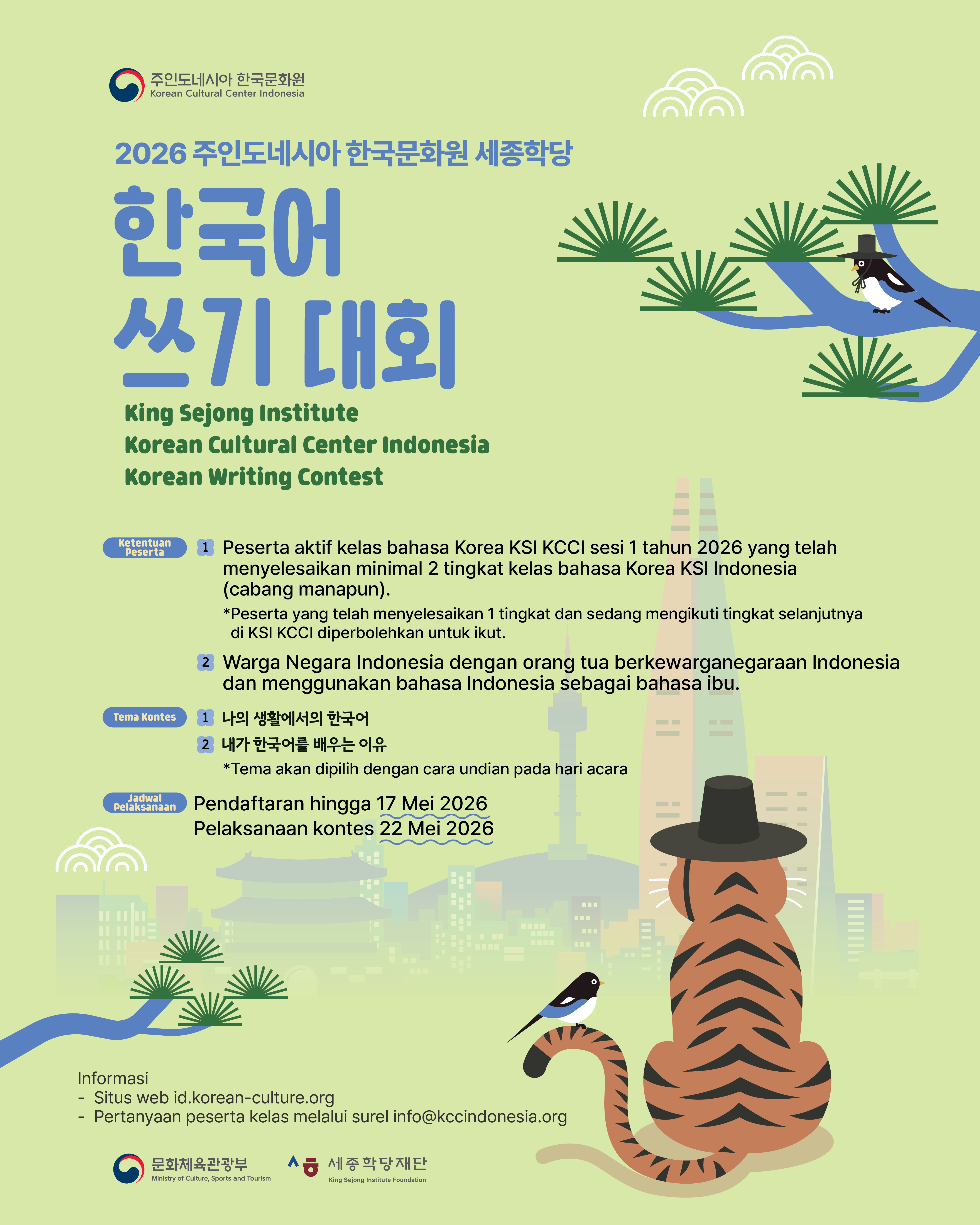 King Sejong Institute Korean Cultural Center Indonesia menggelar Kontes Menulis Bahasa Korea pada tahun 2026.