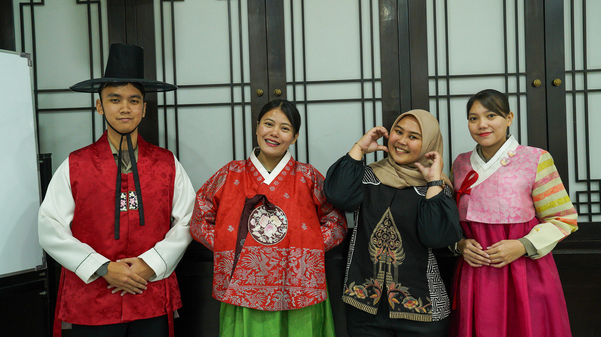 Para peserta berkesempatan untuk menambah ilmu tentang budaya Korea melalui berbagai kegiatan, seperti quiz bahasa Korea, memainkan permainan tradisional Korea, mencoba Hanbok, dan lain sebagainya.