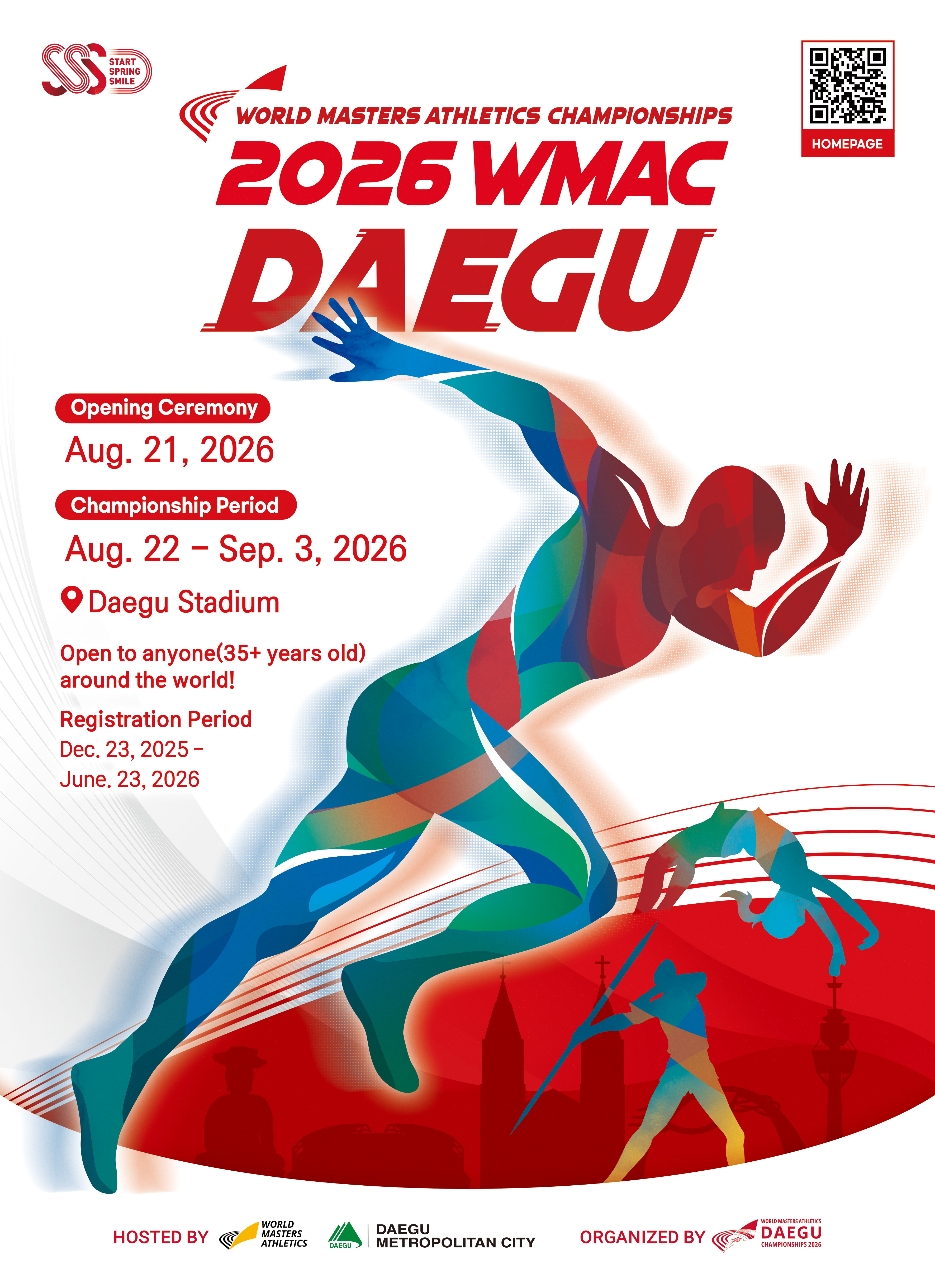 Daegu Metropolitan City of the Republic of Korea warmly invites Masters athletes all over the world to take part in the 2026 Championships and make unforgettable memories with our beautiful City!