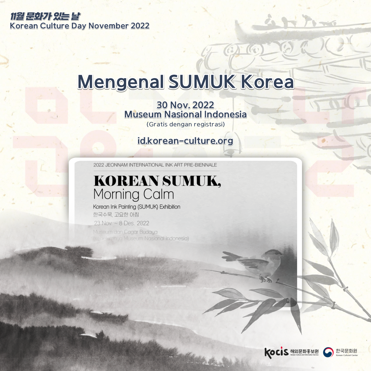 Korean Cultural Center Indonesia mengundang Anda untuk hadir dalam Korean Culture Day bulan November 2022 bertema 'Mengenal <Korean Sumuk>'.