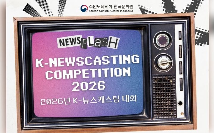 주인도네시아 한국문화원은 'K-뉴스캐스팅 대회'를 개최하오니 많은 신청 바랍니다. 1. 대회 일정 - 영상 제출: 2026년 1월 15일~2월 8일 - 본선: 2026년 2월 27일(문화원에서 대면 진행 예정) 2. 참가자격 - 인도네시아어를 모국어로 하는 17세 이상 인도네시아 국적자 - TOPIK 4급 이상 또는 이와 유사한 고급 한국어 능력을 보유한 자 3. 제출 서류 - 신청서 양식 - 신분증(KTP 또는 학생증) 사본 - 뉴스 대본 4. 영상 제출 방법 - 참가자는 뉴스 대본을 스스로 작성하여 접수 양식에 영상과 함께 제출해야 함 - 영상은 가로 형식으로 촬영해야 하며, 길이는 1~3분 이내여야 함(시간 초과 되거나 1분 이하에 마치는 경우 자동탈락됨) - 영상은 유튜브 또는 구글 드라이브에 업로드 후 제출 양식에 링크 첨부하여 제출 - 신청양식: https://forms.gle/Qu4n2A3QwBFsH8PZ9 감사합니다